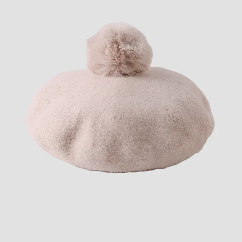 Beige Beret with Pom Pom